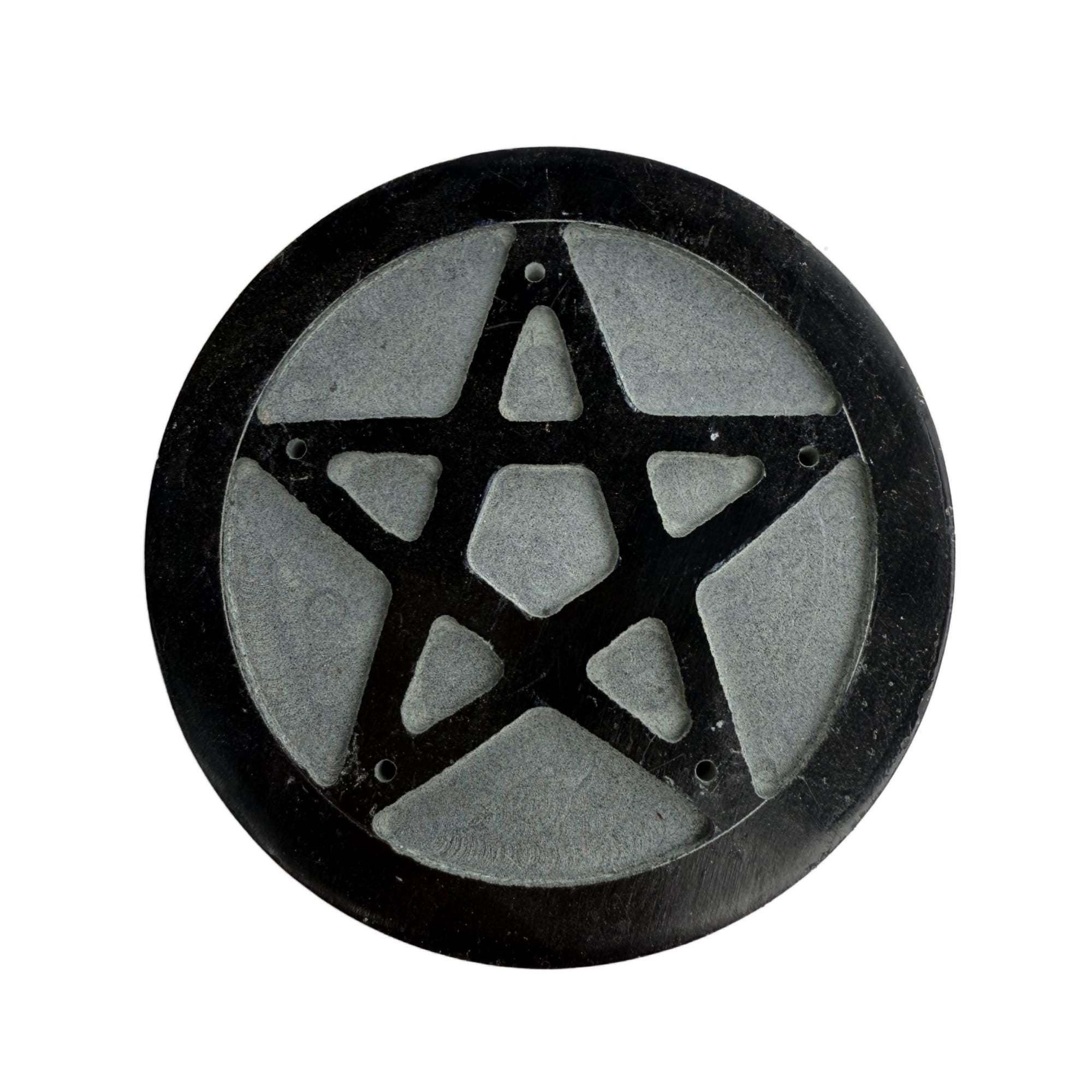Made of natural black stone with carved pentagram design