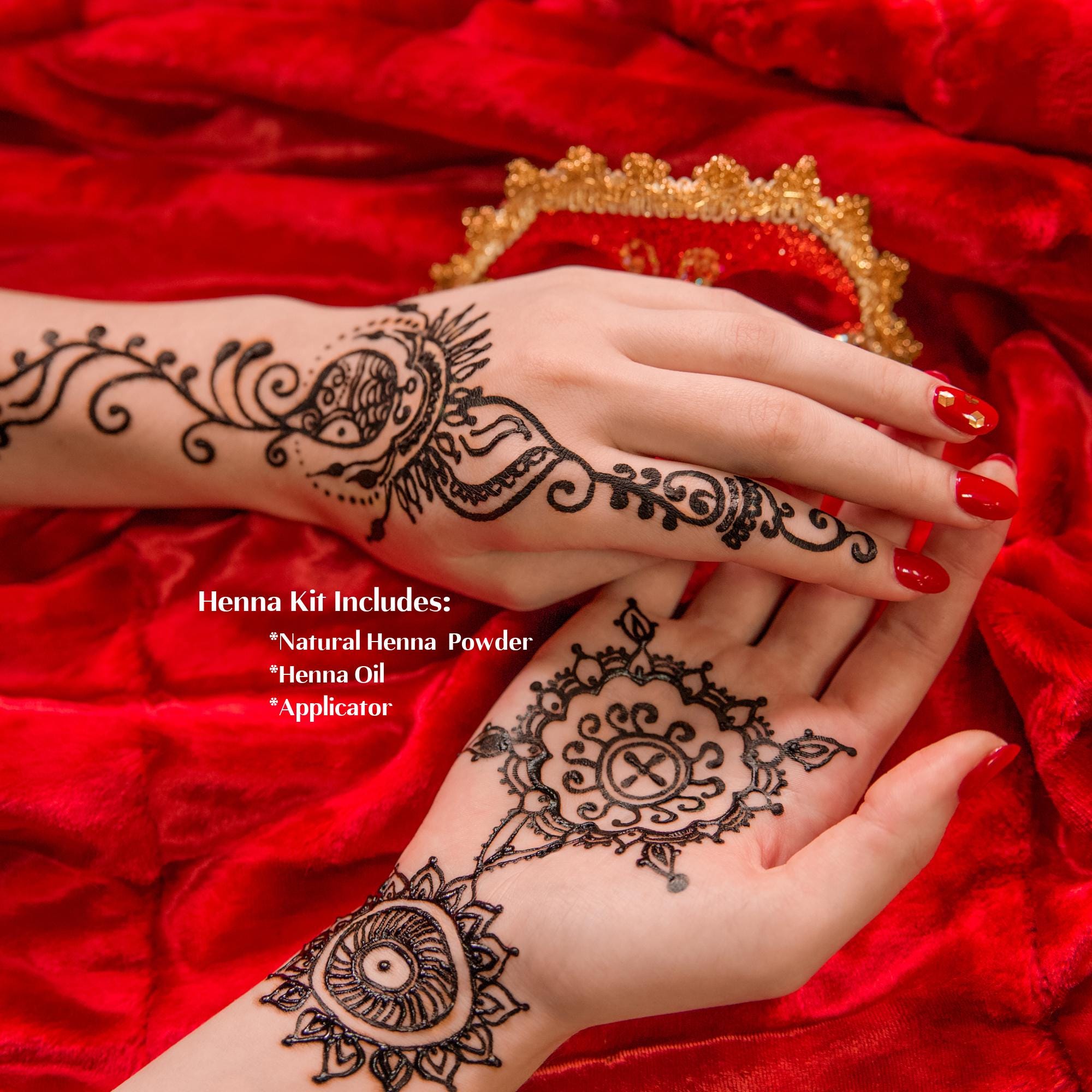 Everything that you need to fancy yourself with henna decorations. It comes with the powder, oil and cone applicator.