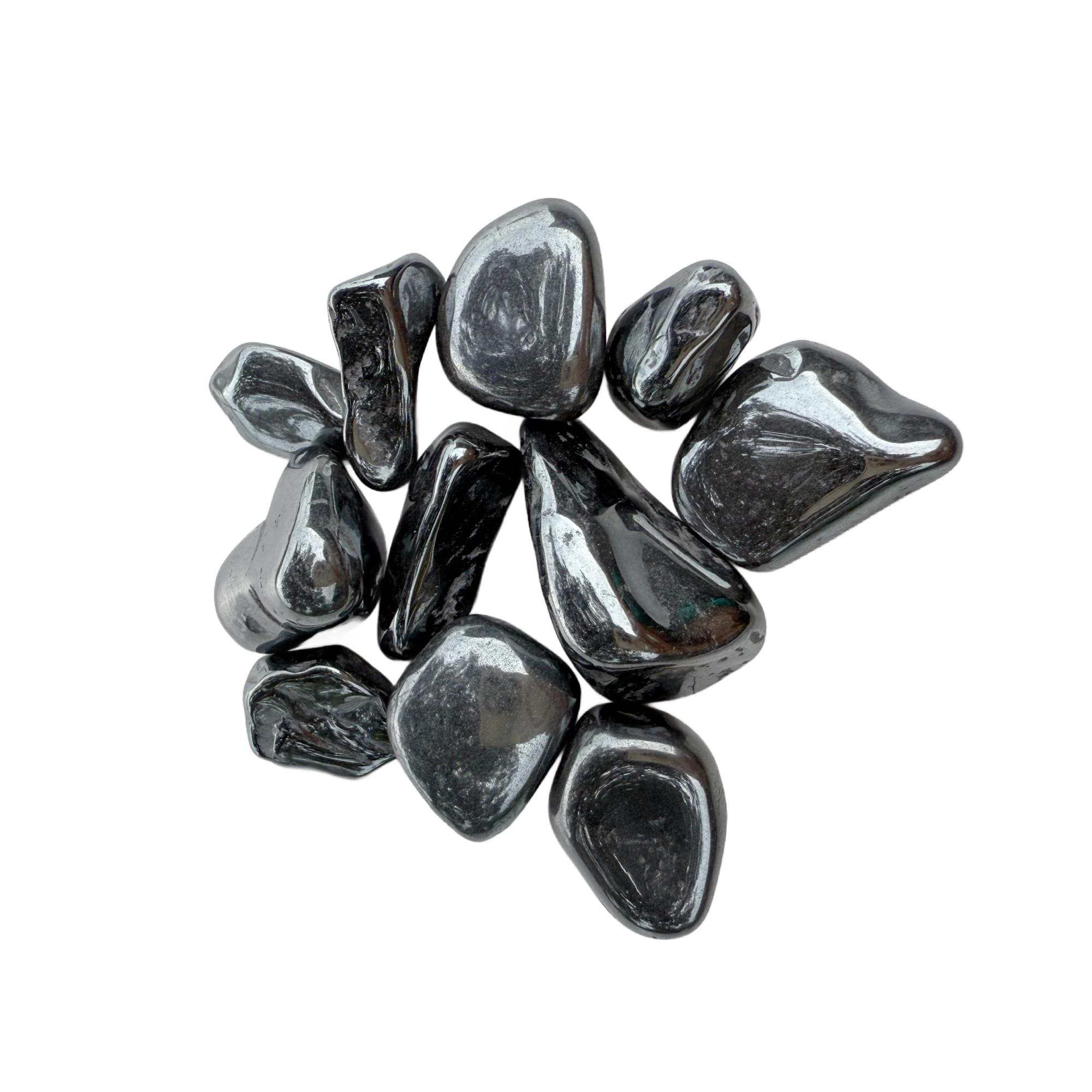 ind balance and stability with these Hematite Tumble Stones. Known as a powerful grounding stone, Hematite helps connect you to the energy of the Earth while protecting your aura from negative influences. Its metallic silver-black sheen makes it both striking and energetically powerful, perfect for meditation, healing, or carrying throughout the day.