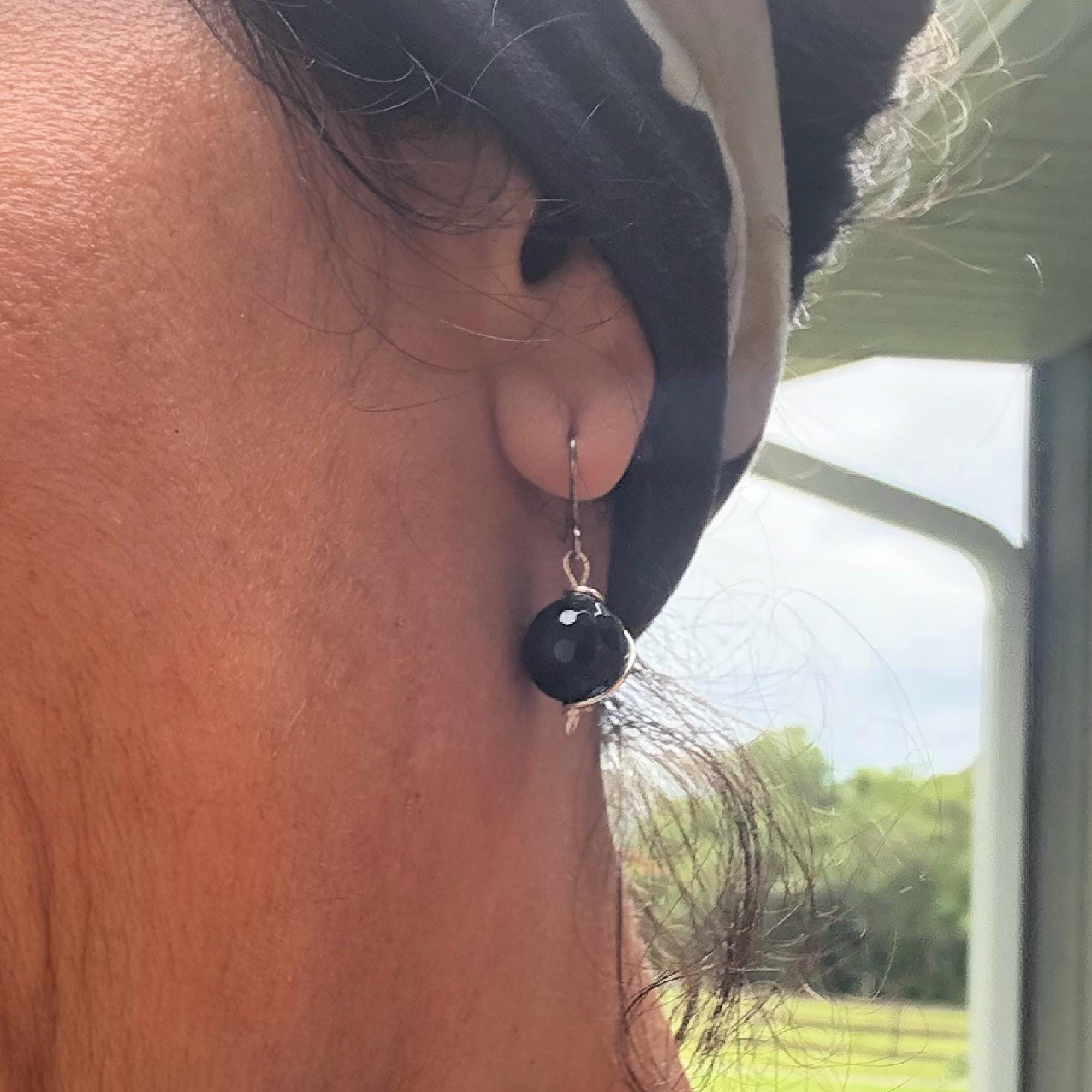 Adorn yourself with these handmade dangle earrings, featuring genuine black banded agate stones. Each earring showcases the striking contrast of deep black with crisp white or gray bands—making every pair uniquely eye-catching.