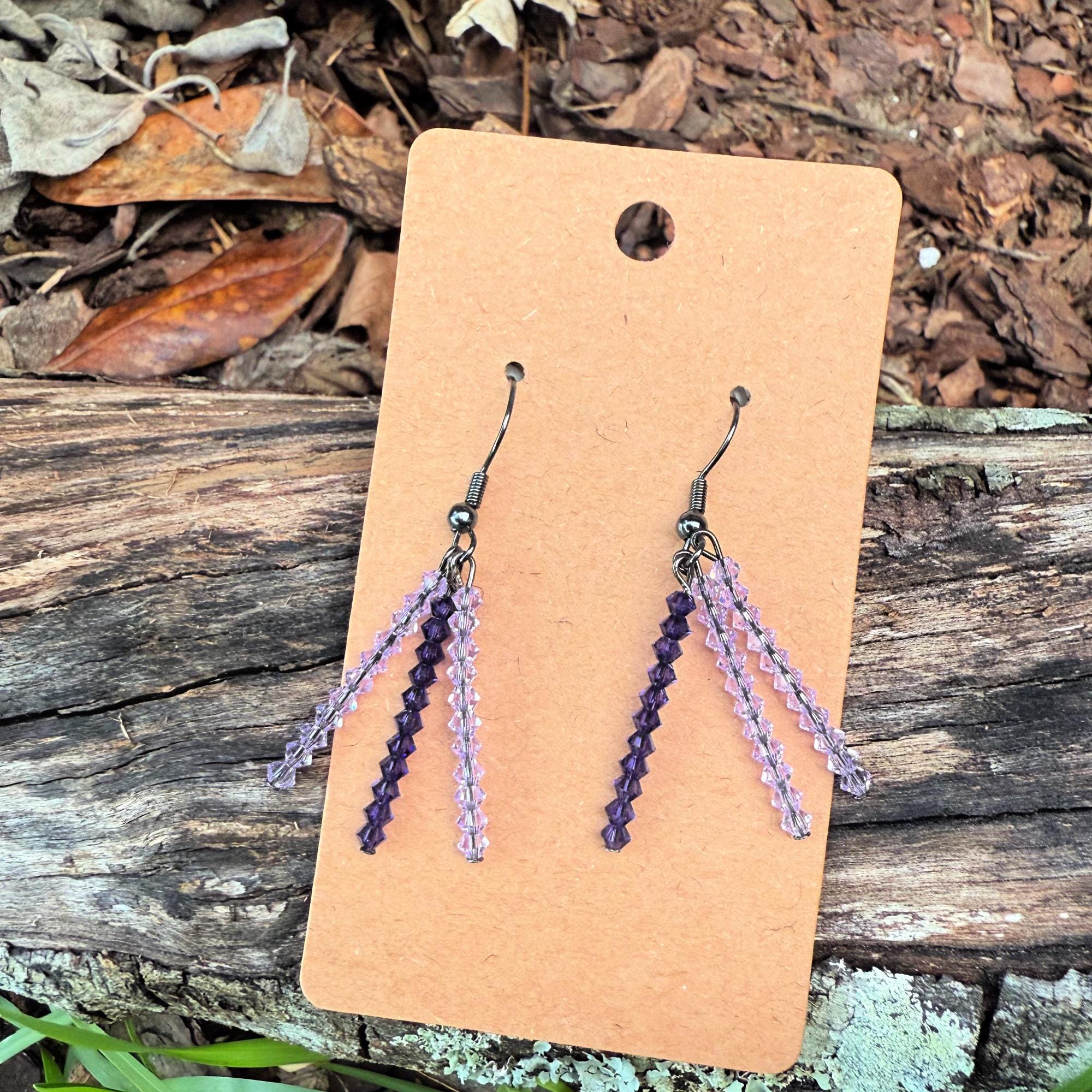 Genuine Swarovski Bicone Crystals in shades of lavender and deep purple—radiant quality and color clarity that lasts.