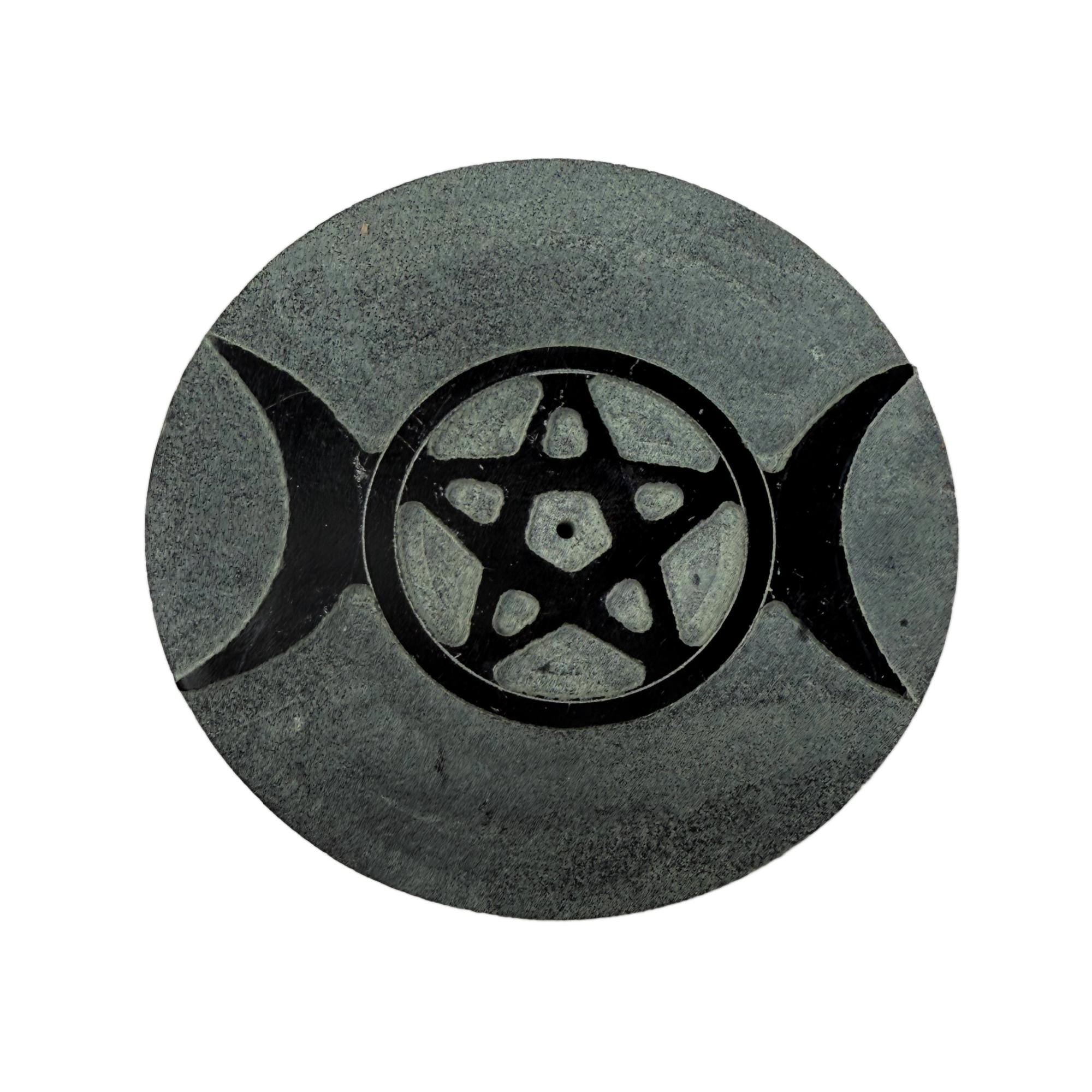 Elevate your sacred space with this handcrafted Soapstone Altar Tile, intricately carved with the Triple Moon symbol embracing a central Pentacle. Designed to honor the divine feminine cycles and sacred protection, this altar piece adds intention, elegance, and ritual power to any practice.