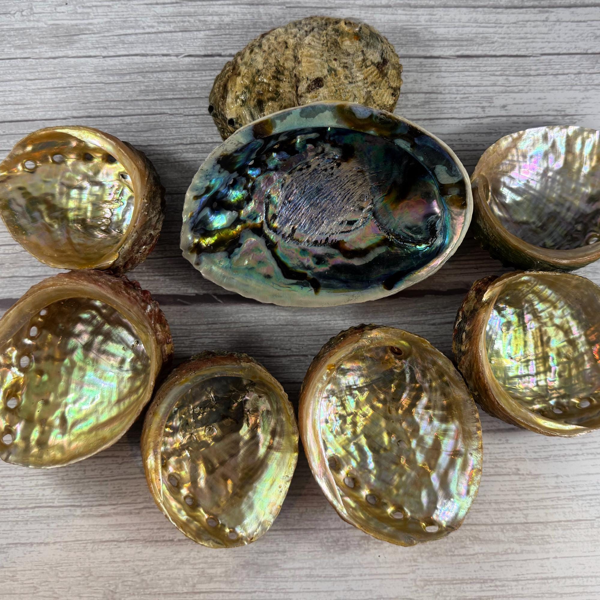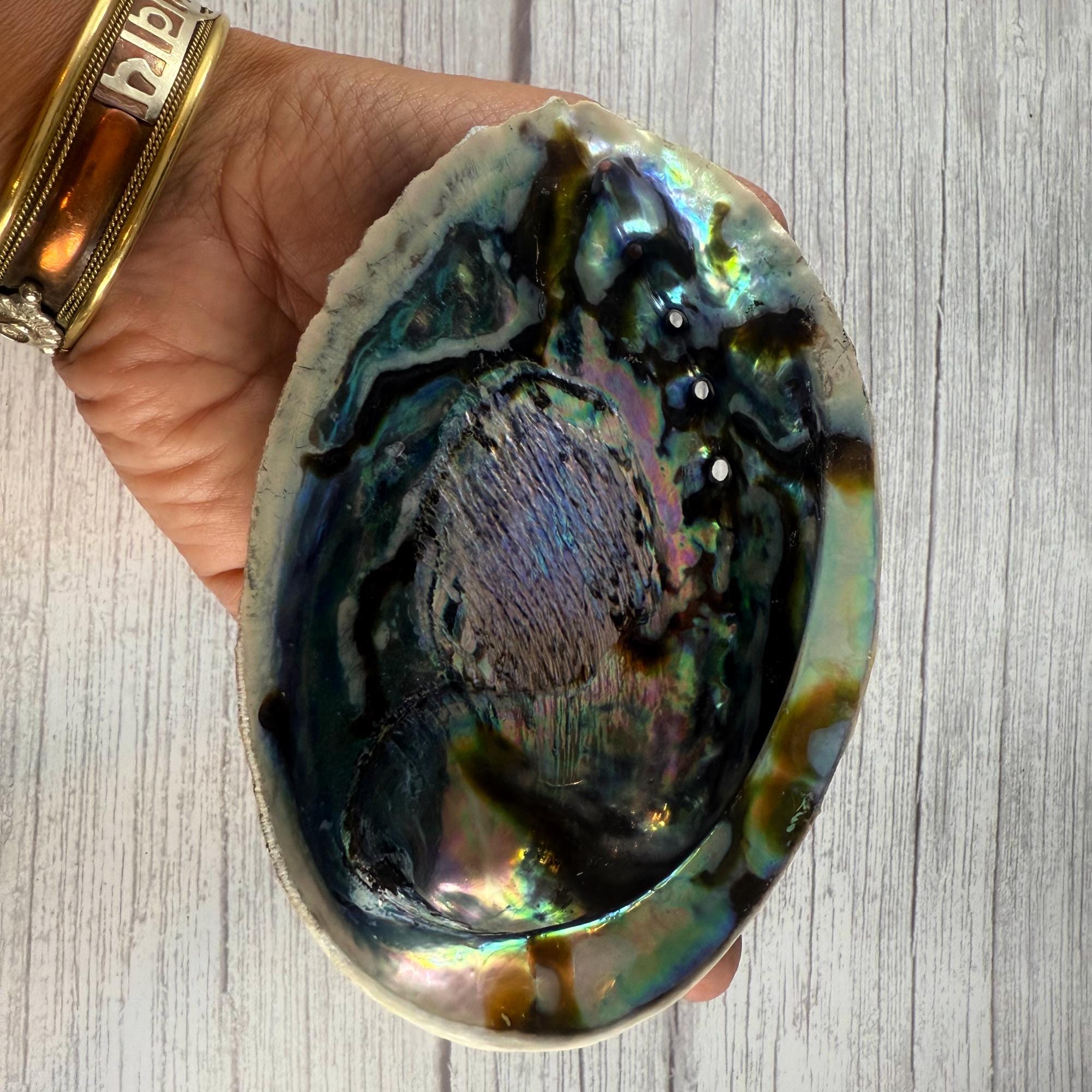 🌿 Uses: Smudging rituals – Hold sage, palo santo, or herbs while burning Altar décor – A grounding, elemental piece for your sacred space Cleansing tool – A natural bowl for holding crystals during energy clearing Each shell is raw and natural, meaning no two are exactly alike in shape, texture, or coloration. The shimmering inner nacre may show rainbow tones of blue, green, pink, and silver, while the outer side maintains its organic, earthy feel.